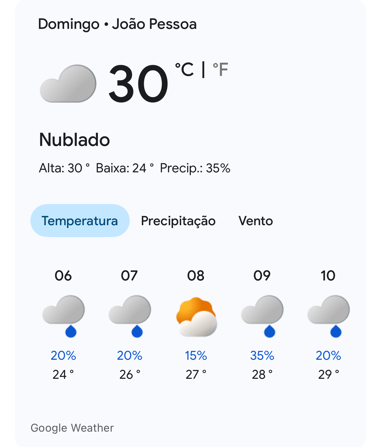 A previsão do tempo para este domingo indica céu nublado, com temperaturas variando entre 24°C e 30°C. Há 35% de chance de chuva ao longo do dia, além de ventos moderados vindos do sudeste e umidade em torno de 65%, condições que exigem atenção redobrada dos participantes quanto à hidratação.